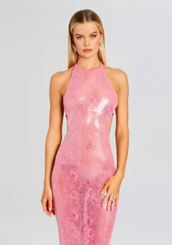Channel your inner romance with our Samara Dress, featuring a whimsical ruffle hem, flowing silhouette, daring high slit, and captivating open back. Embrace the epitome of femininity and grace with this statement piece that promises to steal the spotlight at any occasion. Shown here in Dusty Pink Botanical.
